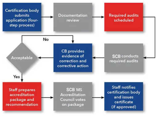 Accreditation is the means by which an authoritative body (SCB) gives formal recognition that an organization (the CB) is competent to carry out specific tasks. Accreditation provides assurance to customers that the CB operates according to internationally accepted criteria.